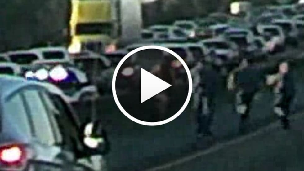 A man running across Interstate 5 in Marysville, Wash., shook off four TASER hits as he taunted officers and resisted arrest on Sunday. The encounter went viral after a family waiting in traffic on the shut-down interstate filmed it.