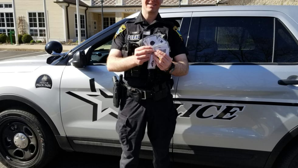 Officer Ross Chibe of the Palos Park Police Department was patrolling the western heavy forested wooded areas of the area after midnight Monday when he noticed a vehicle ahead of him, driving very slowly, and then stopping and starting.