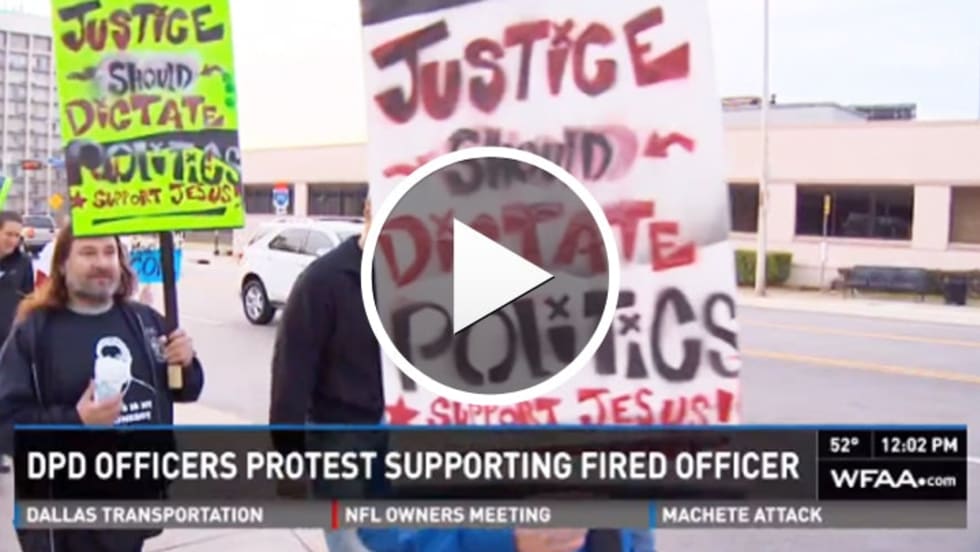 More than 100 Dallas police officers and business owners marched to City Hall Wednesday, demanding that Officer Jesus Martinez be reinstated on the force.
