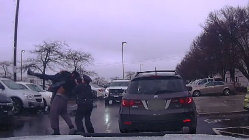 An officer with the Grove City (OH) Police Department was uninjured despite being body-slammed to the pavement in a parking lot during an arrest on Monday.
