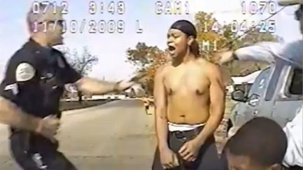 Paris (Texas) Police Chief Bob Hundley released a three-minute clip of the dashboard video of the arrest, which took place Nov. 10, 2009. In the clip, Officer Jeremy Massey is shown throwing 18-year-old Cornelius Gill onto the hood, after handcuffing him.