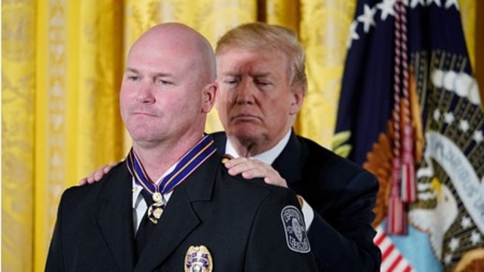 Officers who went "above and beyond the call of duty" in various emergency situations to protect human life received the honors from the president, including those who jumped into action during a terror attack more than two years ago.