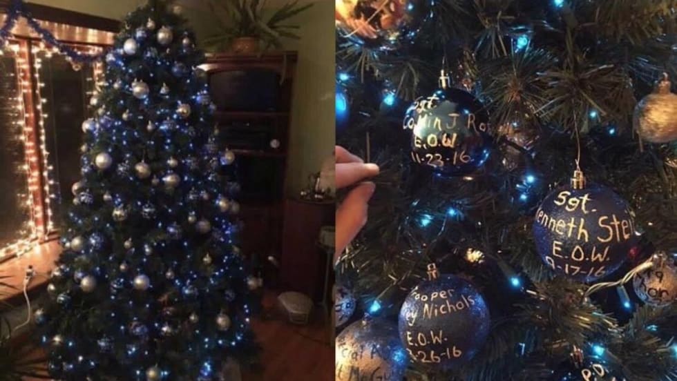Two Ohio officer went to the wrong house on a call recently and found a moving tribute to fallen LEOs on the homeowner's Christmas tree.