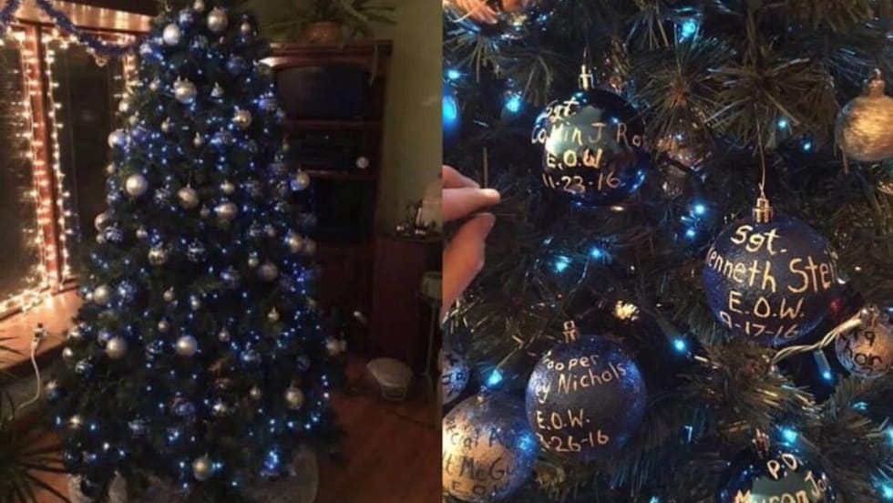 Two Ohio officer went to the wrong house on a call recently and found a moving tribute to fallen LEOs on the homeowner's Christmas tree.
