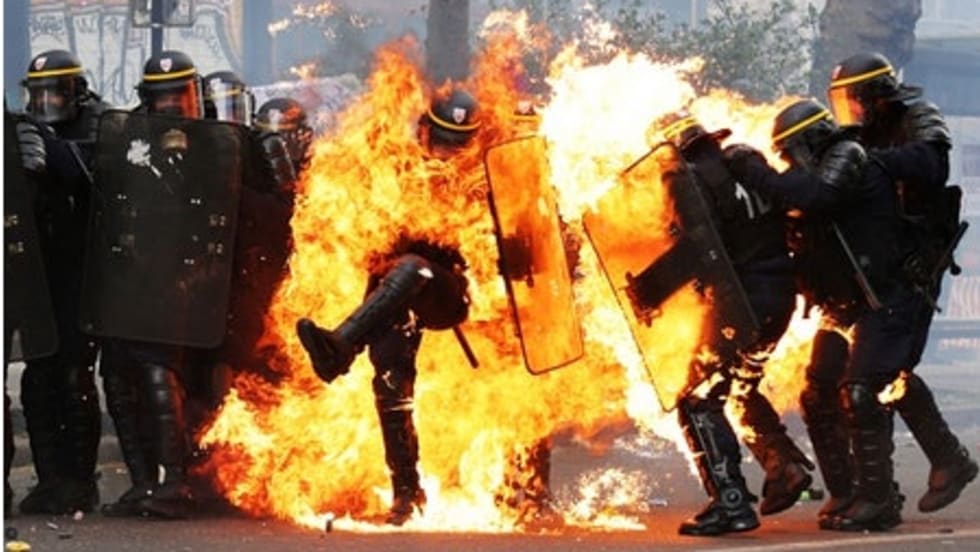 The tweet – sent out by the Autonomous Student Network (ASN) at UT-Austin – states “Instead of #LawEnforcementAppreciationDay how about #LawEnforcementIncinerationDay” next to a photo of a French police officer engulfed in flames after being hit by a Molotov cocktail during last year’s May Day protests.