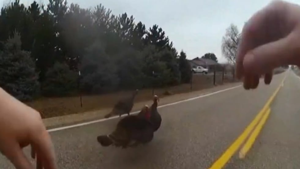 An officer with the Ada County (ID) Sheriff's Office conducting a traffic stop came under sudden attack by a group of wild turkeys earlier this week, and the entire interaction was captured on body-worn camera video.