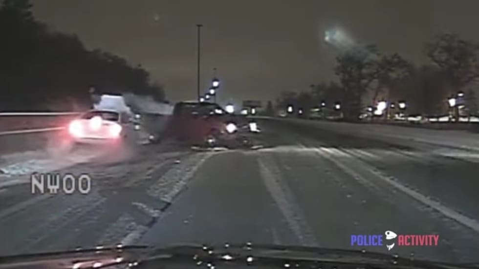 Wyoming, MI, Police have released dash camera video of an officer and a woman being struck by a vehicle on a snowy stretch of northbound US-131.