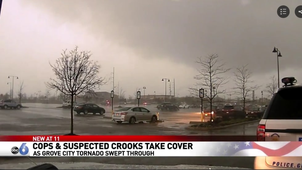 Police said there were shopping carts blowing around, patio furniture scattered from a restaurant, benches, even a lamp broke off and fell on a cruiser. Hail pelted the lot and the winds picked up. The officers knew they had to get the teens to safety inside the nearby Hobby Lobby store.