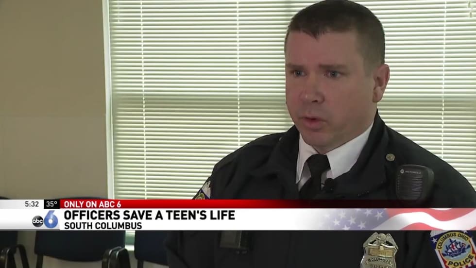A body camera video shows one officer administering Narcan to a Columbus, OH, police officer after he came in contact with an unknown narcotic during a drug arrest and started to display effects.