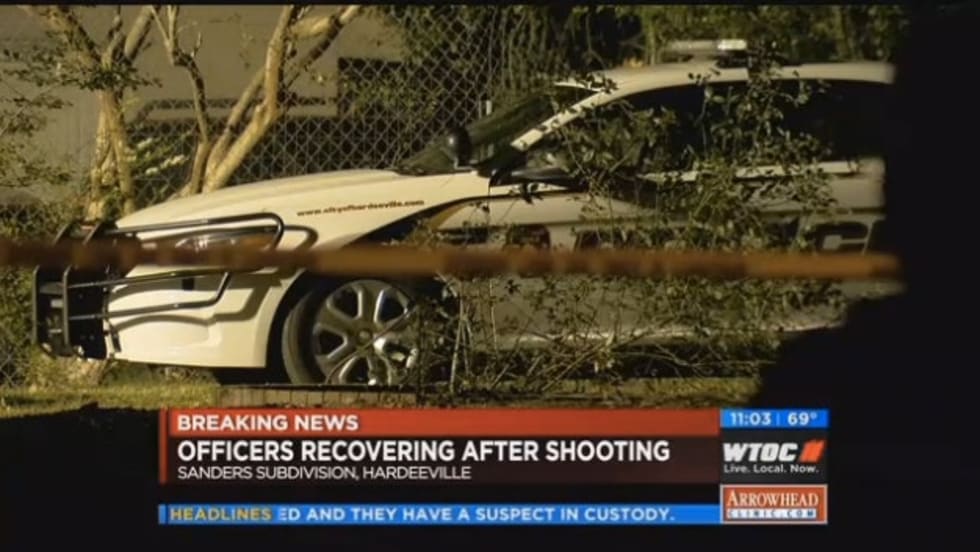 Two South Carolina officers were shot and wounded Thursday evening responding to a domestic dispute in Hardeeville. They returned fire and the suspect was killed.