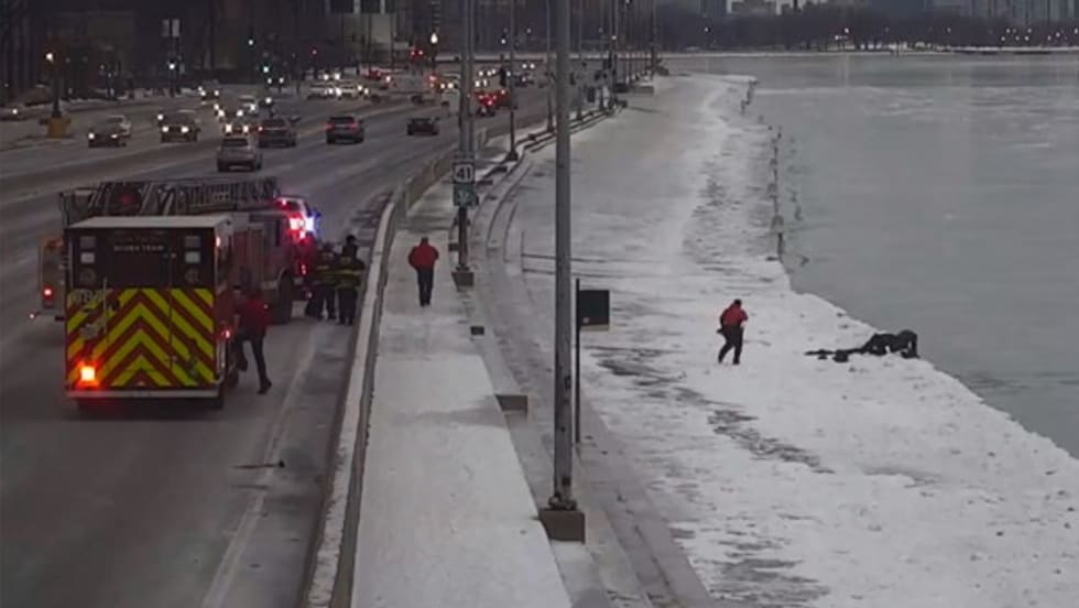 SWAT officers with the Chicago Police Department worked with firefighters and personnel from the marine unit to rescue an individual who had fallen into the freezing waters of Lake Michigan.
