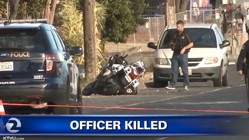 A San Jose, CA, police officer died in the line of duty in a motorcycle crash on Tuesday, the chief of police announced.