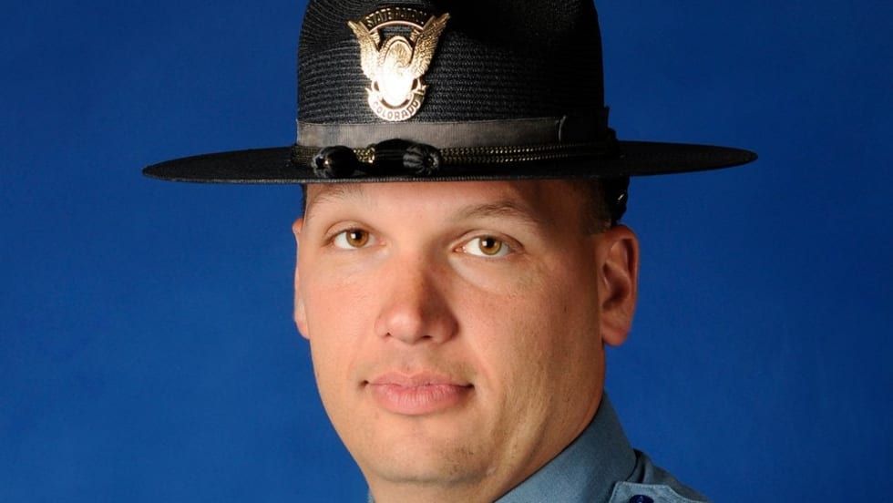 A Colorado State Patrol trooper was on the shoulder of Interstate 25 near Castle Rock Friday afternoon when a tractor-trailer rig crossed the solid white line and hit him, killing him instantly.
