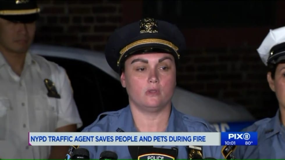 Two NYPD traffic agents saved multiple people and their pets from two homes in Queens on Thursday after they saw the thick billowing smoke and bright orange blaze from a house fire.