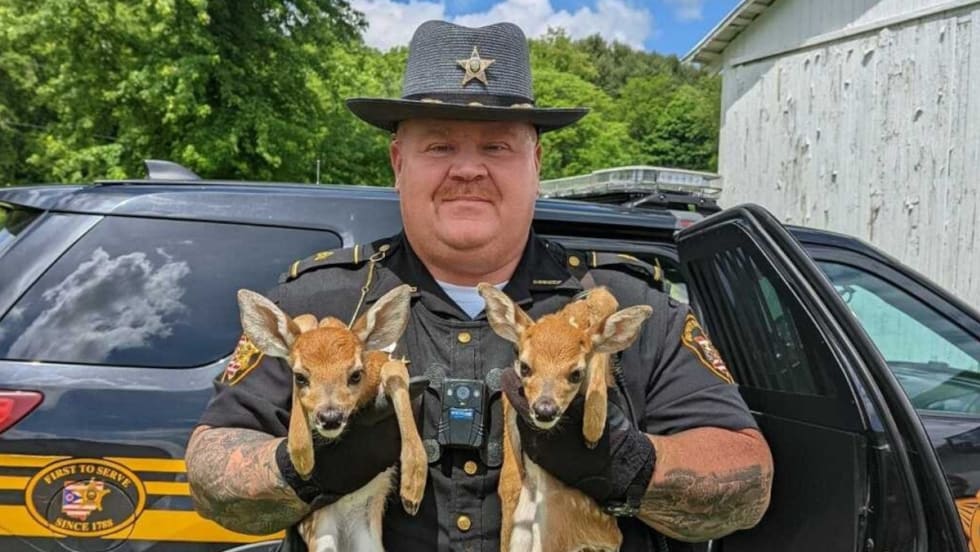 In Ohio, a Belmont County Sheriff’s Office deputy and a state trooper rescued two fawns after the mother deer was struck and killed on Interstate 70.