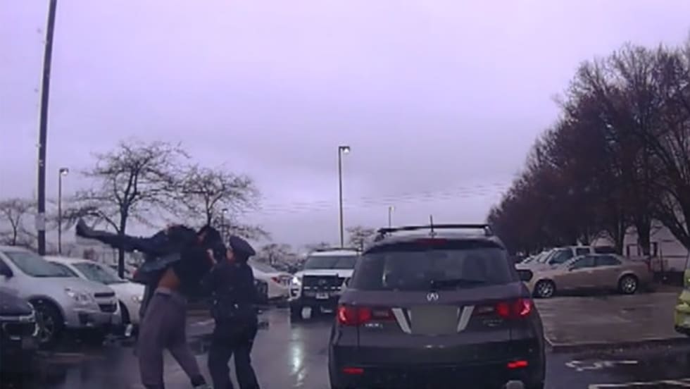 An officer with the Grove City (OH) Police Department was uninjured despite being body-slammed to the pavement in a parking lot during an arrest on Monday.