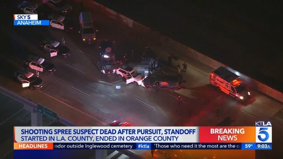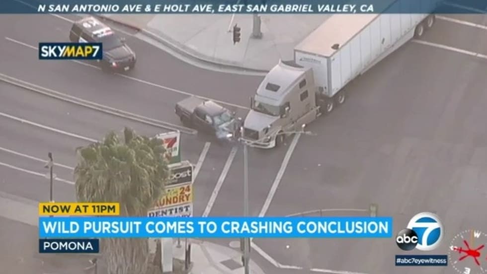 Footage from a news helicopter showed that the driver of the tractor-trailer appeared to intentionally block the suspect.