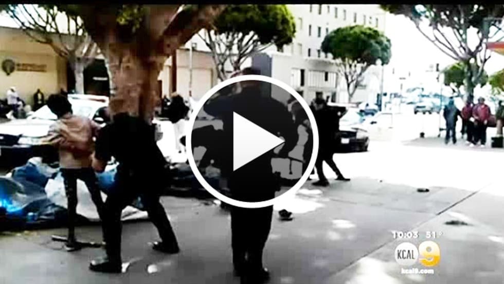 Read More →Four Los Angeles police officers were involved in a struggle with a man on skid row Wednesday after he tried to grab a television news camera and then scuffled with the officers, injuring three of them.