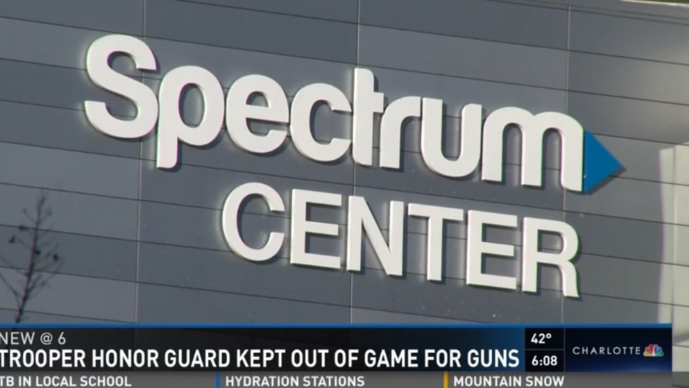 Last week security working the Charlotte Hornets vs. Miami Heat NBA game at Charlotte's Spectrum Center barred an North Carolina Highway Patrol honor guard from entering the arena because the troopers were armed.