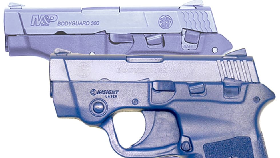 Ring's Manufacturing's Smith & Wesson M&P Bodyguard 380 Bluegun replica is a 1:1 exact replica of the original and is molded from solid blue polyurethane to differentiate it from a live weapon.