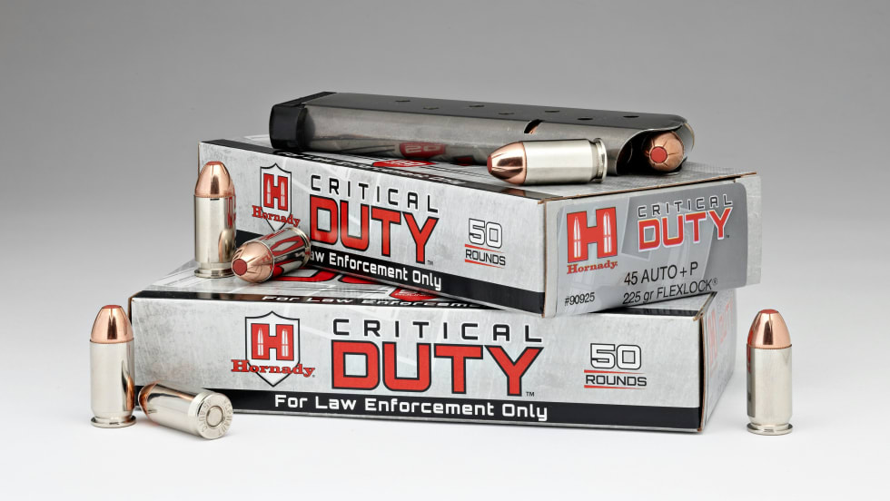 Hornady Manufacturing has introduced a .45-caliber auto +P round for law enforcement in its Critical Duty line that's designed to stop threats without overpenetration, the company announced.