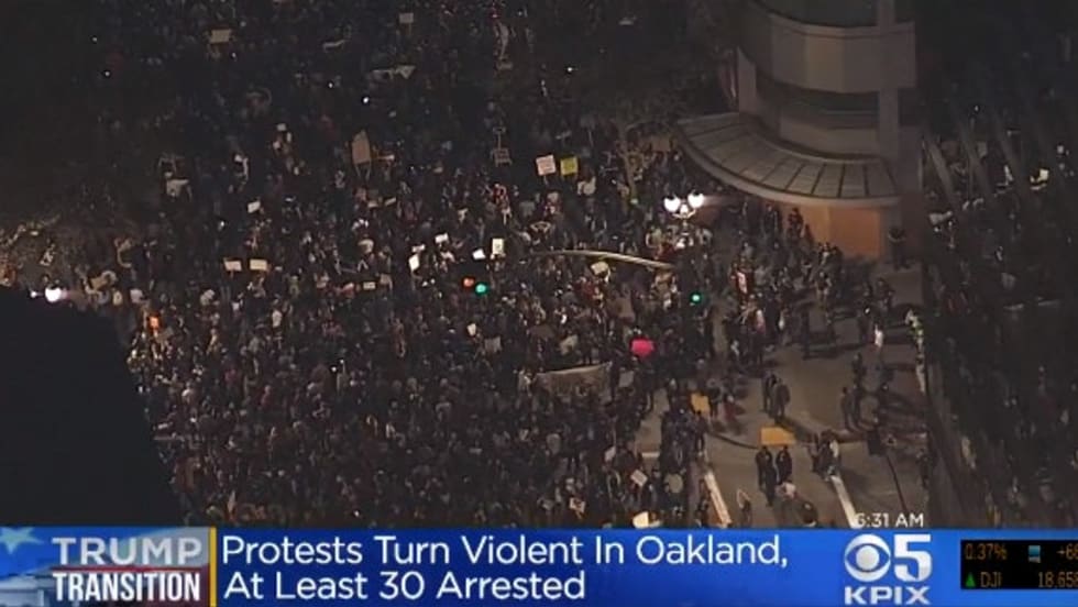 Thousands protesting Donald Trump's victory in the presidential election took to the streets for a third night of demonstrations and vigils in several U.S. cities, with a protest in Portland, OR, turning into a "riot."