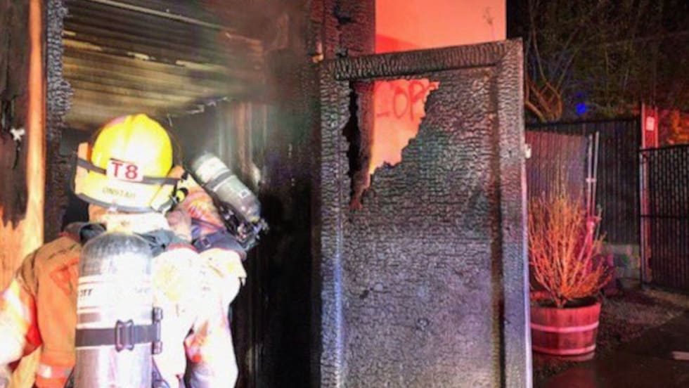 Police said someone in the crowd then used an unknown accelerant on the wooden framing around a door of the building, then lit it on fire.