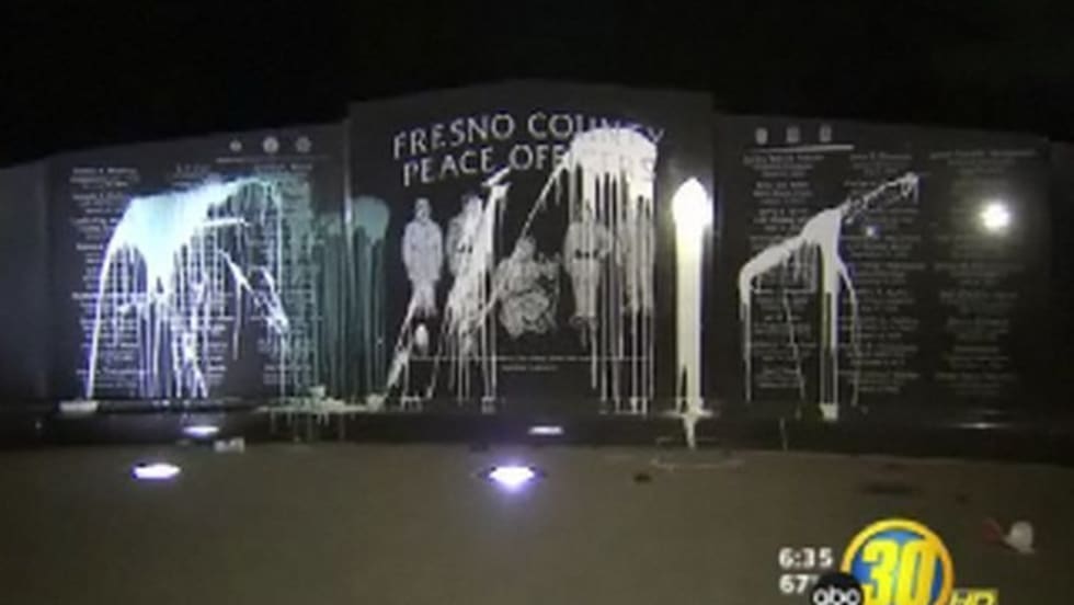 Walls with the names of 58 officers who died in the line of duty were covered in white paint, and notes were left stating, "Rest in peace Oscar Grant."
