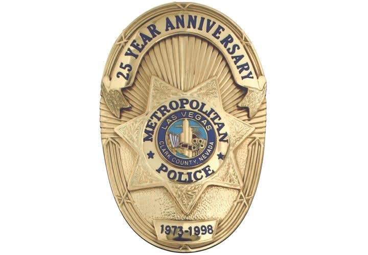 Read More →Special police badges have become a more common sight especially in larger agencies. The Las Vegas Metropolitan Police Department issues anniversary badges every five years to boost officer morale and honor the agency's heritage. The agency emerged in 1973 from a merger of the Las Vegas Police Department and Clark County Sheriff's Department. The agency also produced a 9/11 badge commemorating the officers who helped in New York. View these badges, which were designed by Jimmy Smith, co-founder of an agency museum, and produced by Sun Badge Company. Photos courtesy of Sun Badge.