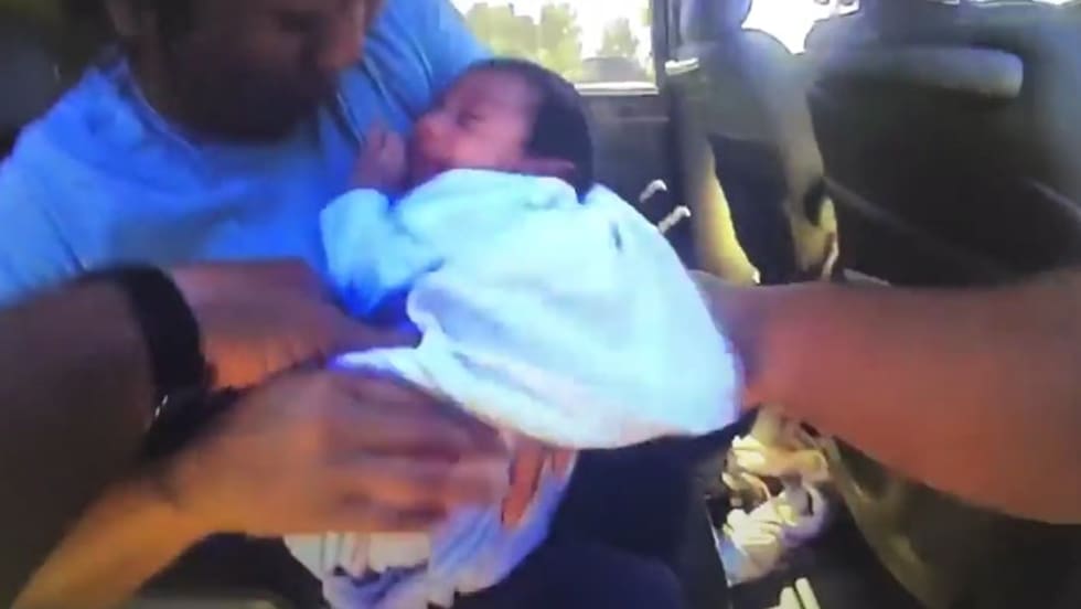 The dramatic bodycam video shows Evans pull the baby from the van and start CPR.