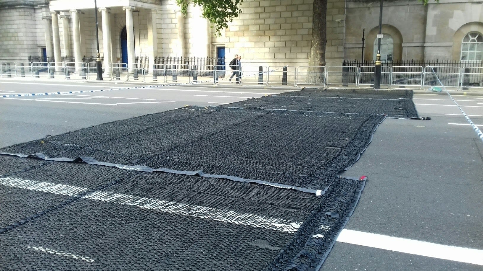 Scotland Yard is deploying the latest in anti-terrorism equipment designed to thwart vehicle attacks: a futuristic net bristling with tungsten steel spikes that security forces can quickly lay down like a carpet on a roadway.