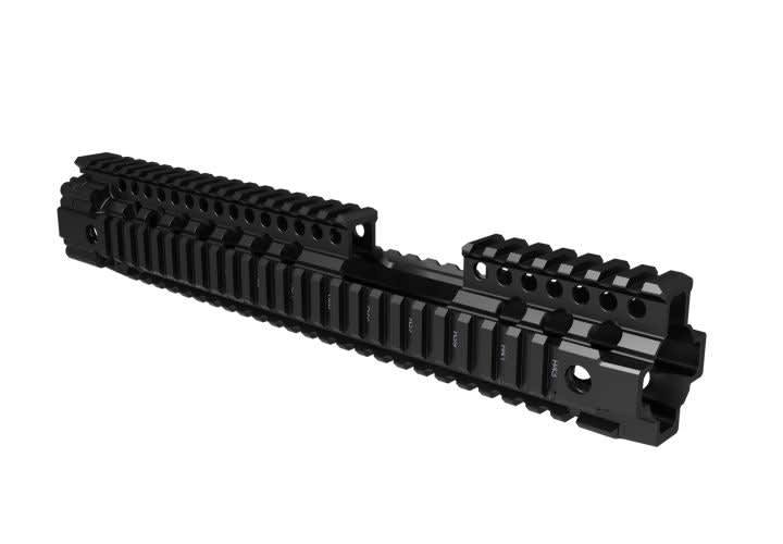 Read More →The AR14 Lite Rail II is the second generation of the company's Lite Rails. New features include a one-piece aluminum rail that replaces the two-piece version and a Bolt-Up System with tabs that aid in alignment to the upper receiver during installation.