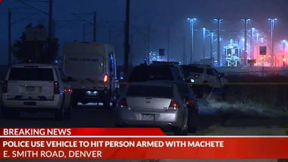 Officers with the Denver Police Department were forced to use at least one patrol vehicle to stop a rampaging assailant armed with a machete on Thursday morning.