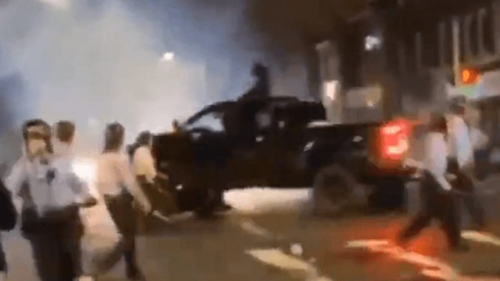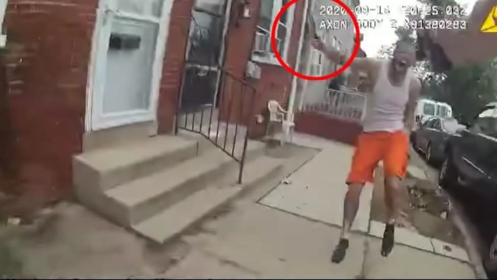 A man identified as Wallace can be seen on citizen video chasing the officers around the car. The officers give the man orders to "drop the knife." He appears to advance on them and they open fire.