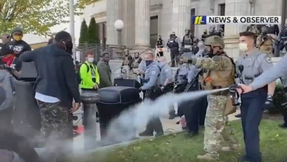 Lt. Daniel Sisk, a spokesman for the Graham police, told reporters Sunday that no one was directly pepper-sprayed in the face and it was the crowd that "became violent" after police were concerned about safety from the gasoline generators used for the march.