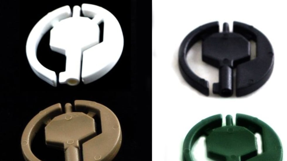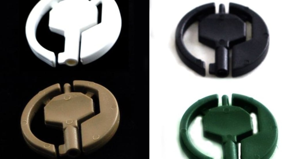 The UHC-4PK non-metallic handcuff key, which is composed of a non-metallic material, opens all brands of cuffs. The key itself is encapsulated in a holding ring that can be hooked to shirt buttons, sewn into clothing hems or attached to the back of watches, hats or shoes.