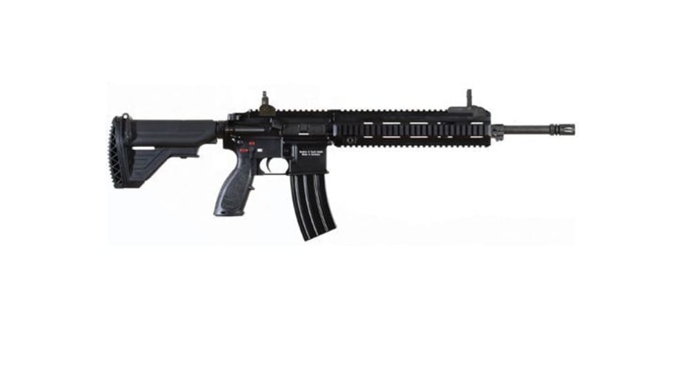 The HK IAR is a 5.56×45mm NATO (5.56mm NATO) gas piston/op-rod AR-15-config lighter-weight rifle/carbine package.