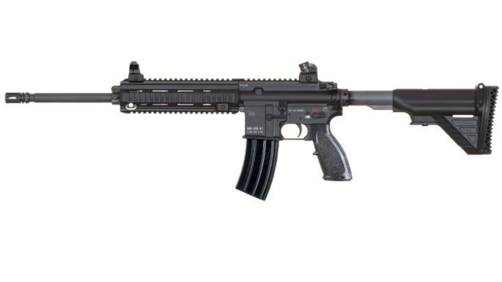 The 5.56x45mm MR556A1 would be available for purchase by off-duty law officers — the HK416 is an agency issued rifle only — and employs a gas piston operating system with a piston and "pusher" rod in place of a gas tube.
