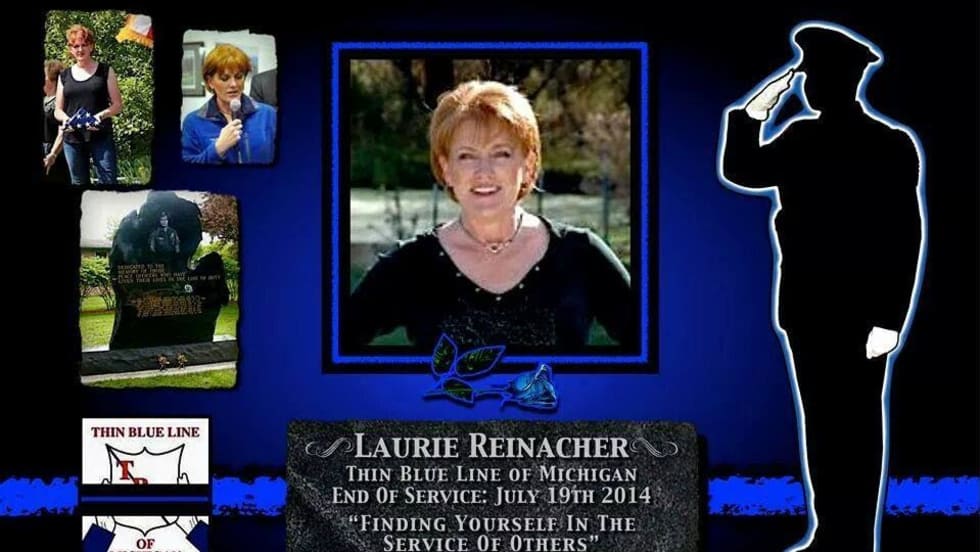 The Founder and Executive Director of Thin Blue Line of Michigan, Laurie Ann Reinacher, age 56, passed away peacefully at home while surrounded by her loving family early Saturday morning, July 19, 2014.