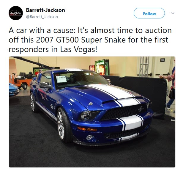 Read More →A Ford Mustang sold at an auction in Las Vegas on Saturday raised $1 million for first responders in the city.