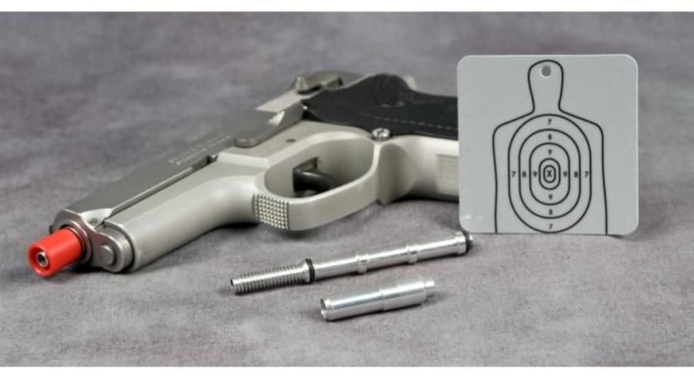 Laser Ammo's new SureStrike laser system transforms any fully operational pistol into a laser-emitting dry-fire training weapon. The system comes with a 9mm laser cartridge, the UhrSecure safety system, a user guide, battery pack, and five reflective targets.