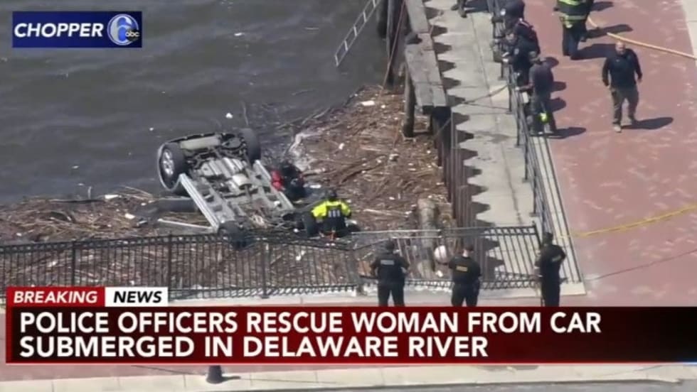 Officials say the car went off Freedom Pier, a fishing spot in Gloucester City, and plunged into the river just after 1 p.m.