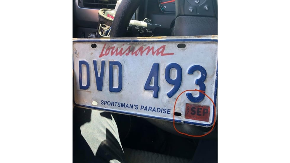 The motorist tooling around in the car with the 1997 plate told the officer, "Sorry, officer. I’ve been busy lately and totally forgot to renew my vehicle registration."