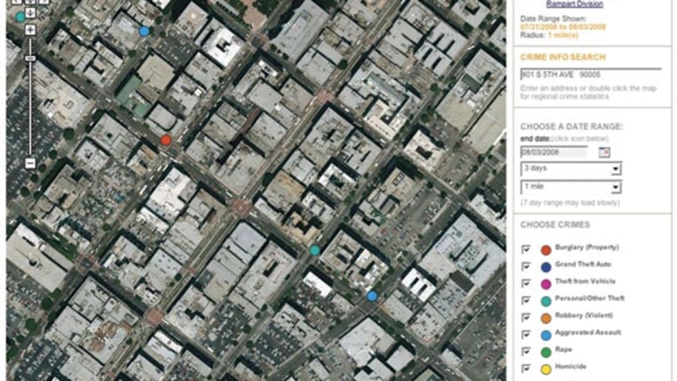 Crime Maps allows users to view updated crime activity anywhere in a police department’s jurisdiction with the new addition of satellite imagery. It is a part of a suite of applications created by ePolicing, a partnership of Los Angeles firms Lightray Productions and Psomas.