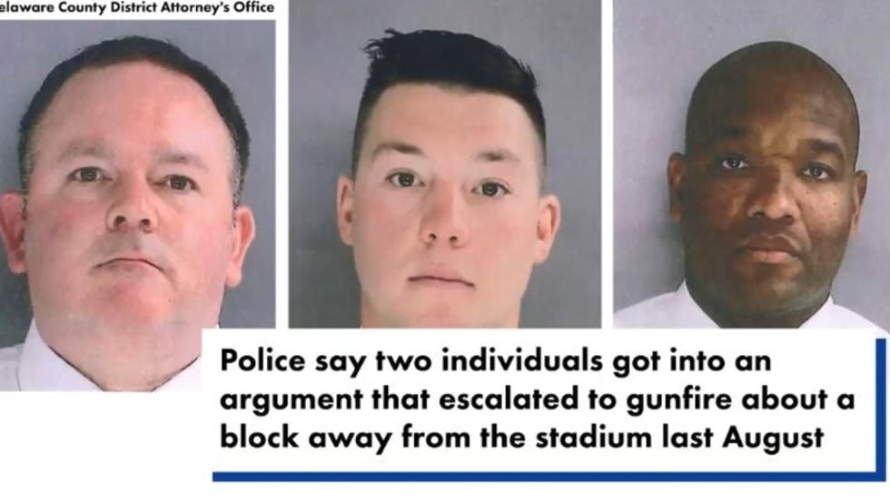 Sharon Hill police officers Devon Smith, 34, Sean Dolan, 25, and Brian Devaney, 41, were hit with a total of 12 counts of voluntary and involuntary manslaughter and reckless endangerment, the Delaware County District Attorney’s Office said Tuesday.