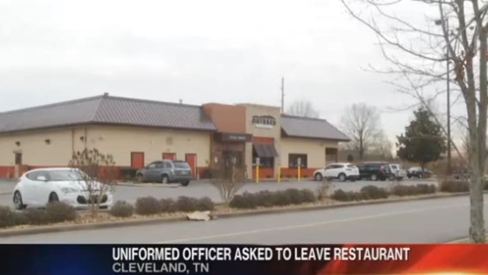 A Tennessee Wildlife Resources Agency officer was asked to leave the Outback Steakhouse in Cleveland, TN, Friday night because he had his service weapon on him.