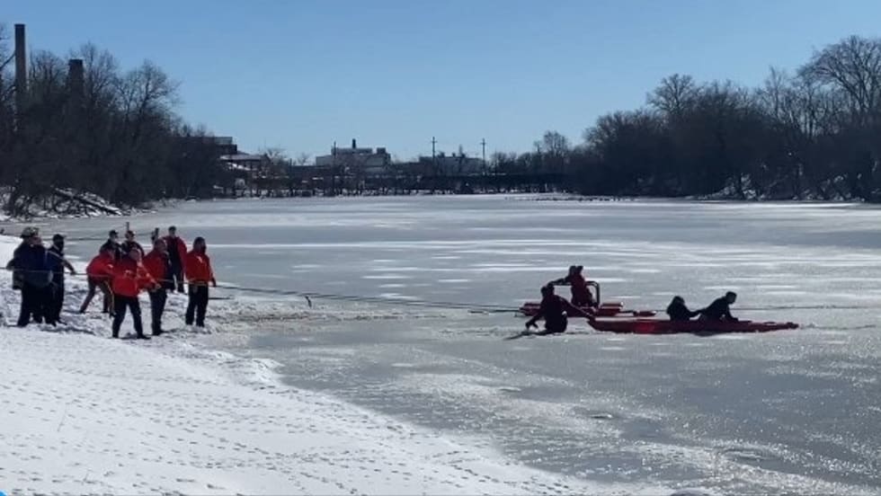 "I lay down on my stomach and just started digging into the ice with my fingers to claw my way out. It felt like eternity with her screaming,” Chief Mike Foligno said.