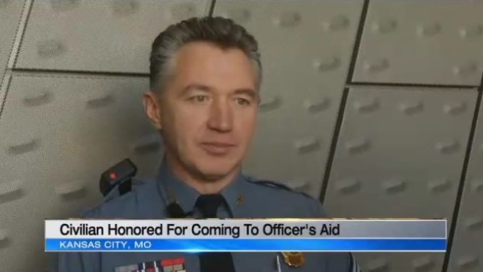 A man received recognition this week for coming to the aid of a Kansas City, MO, officer who was struggling with a suspect resisting arrest.
