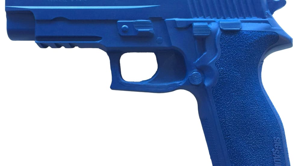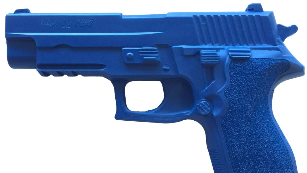 The new SIG Sauer P227R replica from Ring's Manufacturing is molded from solid blue polyurethane to differentiate it from a live weapon.