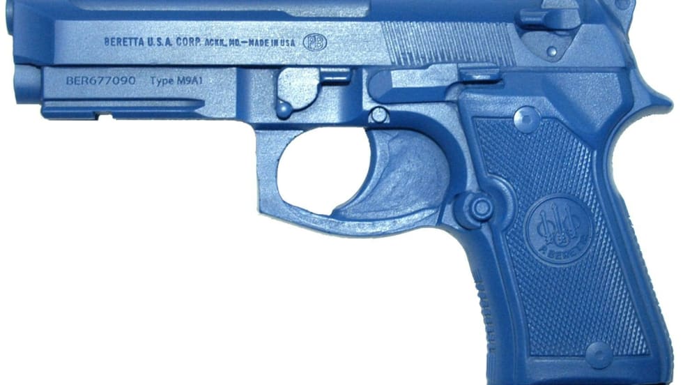 Ring's Manufacturing's new Beretta 92F Compact Bluegun replica is molded from solid blue polyurethane to differentiate it from a live weapon.